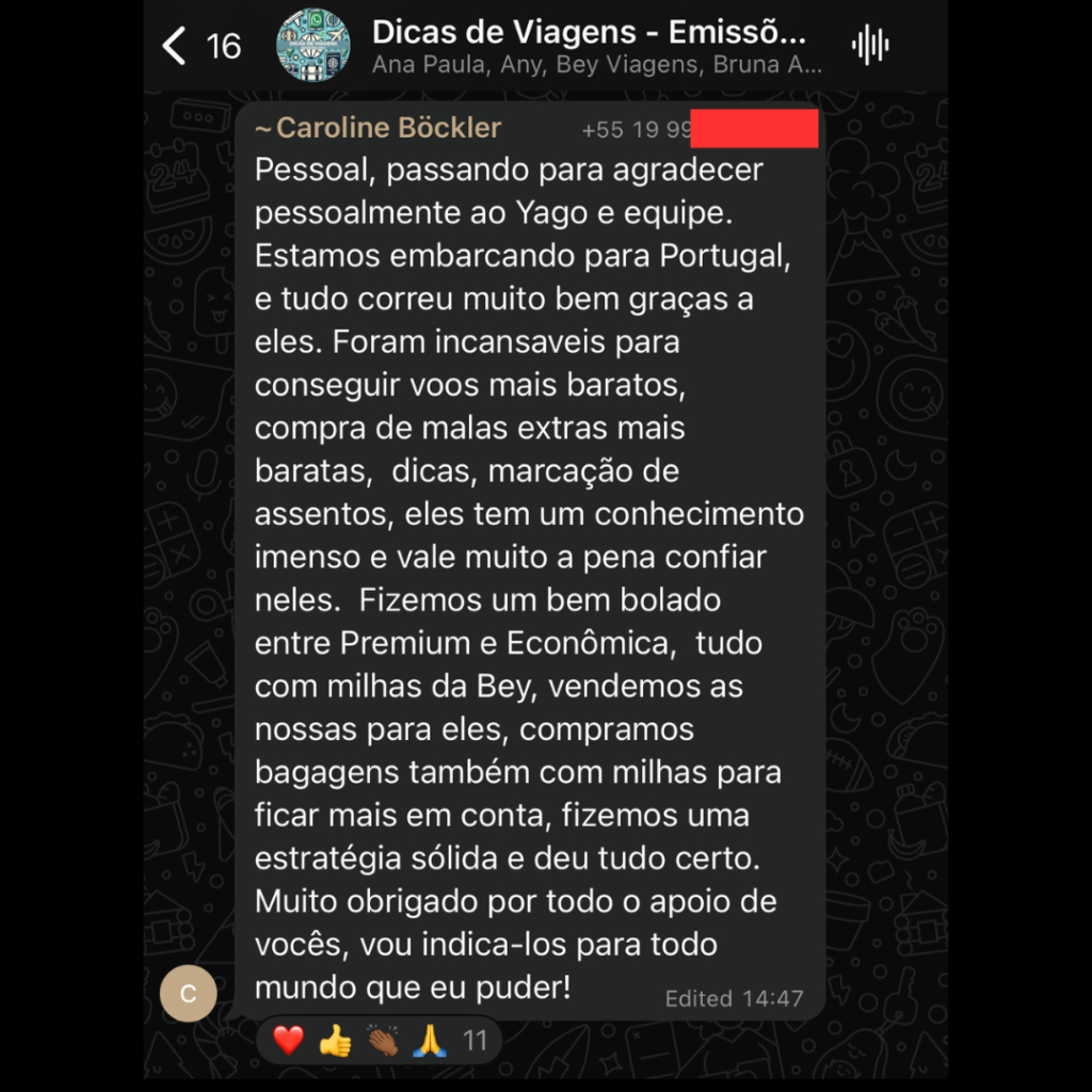Tenha acesso a um grupo fechado onde compartilhamos alertas reais de passagens que valem a pena e as melhores promoções para acumular milhas de forma estratégica e pelo menor custo possível.